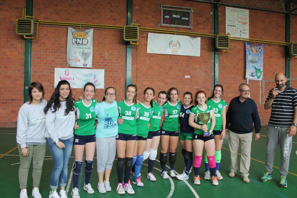 Non poteva che concludersi in modo trionfale, ovvero con una vittoria schiacciante, il cammino impeccabile della squadra U 16 di Camponovo nel ‘Provincia di Pistoia’: alla palestra di via Cosimini, infatti, c’era l’ultimo atto della manifestazione che vedeva affrontarsi le biancoverdi e l’Upv Buggiano di Manuel Bagni, compagine classificatasi alle spalle delle pievarine, costretta a cadere due v…olte proprio per mano di Lippi e compagne. Una gara ininfluente in termini di classifica ma con la Pieve comunque decisa a portare a casa i tre punti per chiudere bene di fronte al proprio pubblico. Pieve rimaneggiata ma pur sempre con una formazione all’altezza e che ha visto il generoso supporto di Chiara Lippi (U 18) proprio per sopperire alle assenze. La gara è sempre stata in mano alla squadra di casa, la quale non ha avuto problemi a prevalere sulla giovane compagine U 14 avversaria: parziali netti (25-15/25-12/25-11) che rappresentano il gustoso contorno a quella che sarà la bella festa a sorpresa preparata da dirigenti e genitori alle atlete biancoverdi nel post partita, preceduta dal momento più atteso, ovvero la consegna della coppa da parte del presidente della Federazione Silvano Lucarelli al capitano Gemma Lippi, la quale ha finalmente alzato l’ambito trofeo insieme alle compagne. Nell’occasione vogliamo sottolineare le mai più sagge parole del nostro direttore sportivo Amanzio Marsili che, ribadendo la propria soddisfazione per quanto fatto dalla squadra, ha puntualizzato allo stesso tempo come questo debba essere un punto di inizio al fine di stimolare le atlete a lavorare ancor più intensamente per raggiungere altri risultati positivi, specialmente in vista di una stagione successiva che vedrà questo gruppo impegnato su tanti fronti. La società crede pienamente su queste giovani atlete che hanno sempre lavorato con dedizione e impegno durante l’anno, rispecchiando pienamente la filosofia del nuovo corso societario. Bene così. E ora il meritato riposo per poi ripartire più carichi a Settembre. Forza ragazze!