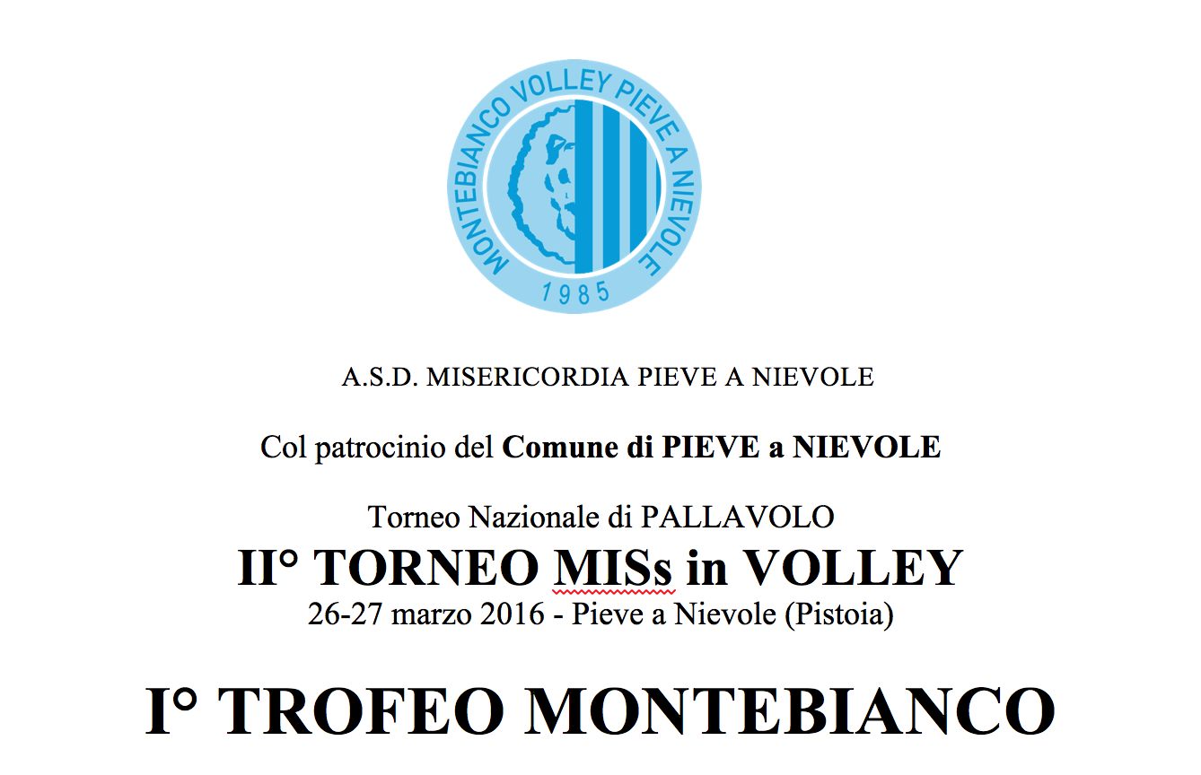 La Società MONTEBIANCO PIEVE VOLLEY organizza un torneo di pallavolo giovanile, dove sarà gradita la Vs partecipazione.