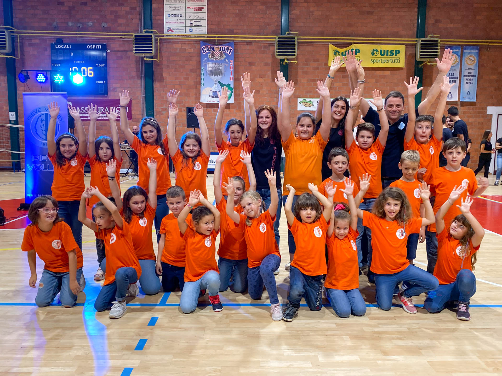 Si è passati poi alla presentazione delle varie squadre giovanili partendo dai loro allenatori e successivamente uno per uno tutti gli atleti che, sfilando davanti al pubblico proteso con le mani, davano a tutti (conoscenti o meno, nonni o genitori, amici o fratelli) il “cinque” simbolo di fraternità e sostegno per una società che si definisce una “Grande Famiglia”. Tutti gli atleti schierati hanno poi formato il classico serpentone che ha visto passare in trionfo, subito dopo le prime squadre della serie D maschile e della serie C femminile, il gruppone del minivolley vero e proprio pilastro per il futuro delle formazioni pievarine.